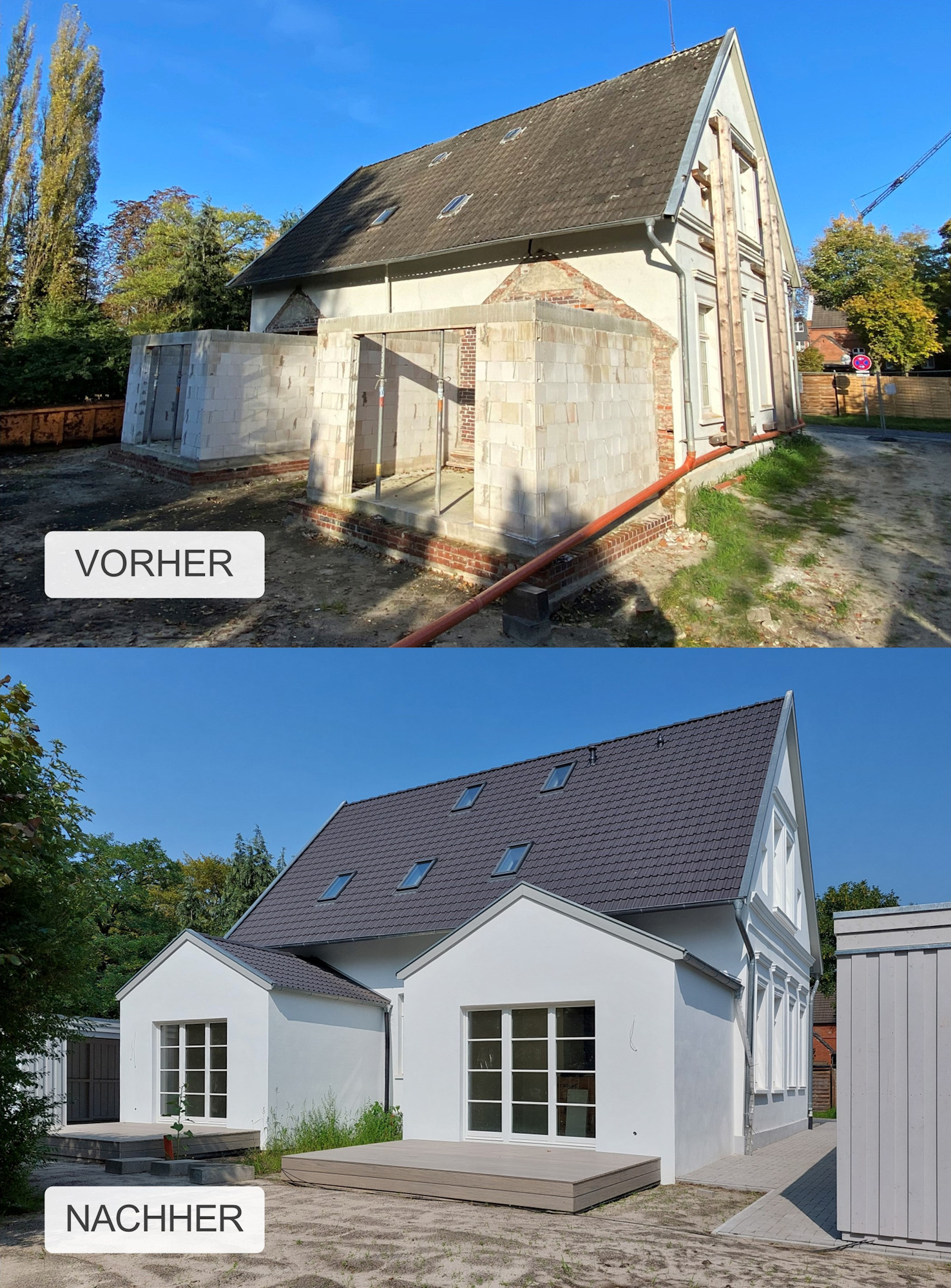 In Oldenburg-Donnerschwee haben wir in den letzten Monaten eine denkmalgeschützte Immobilie saniert, die 1887 im Stil einer ‘Oldenburger Hundehütte’ errichtet wurde. Das Gebäude wies erhebliche Schäden auf und konnte nicht mehr bewohnt werden.