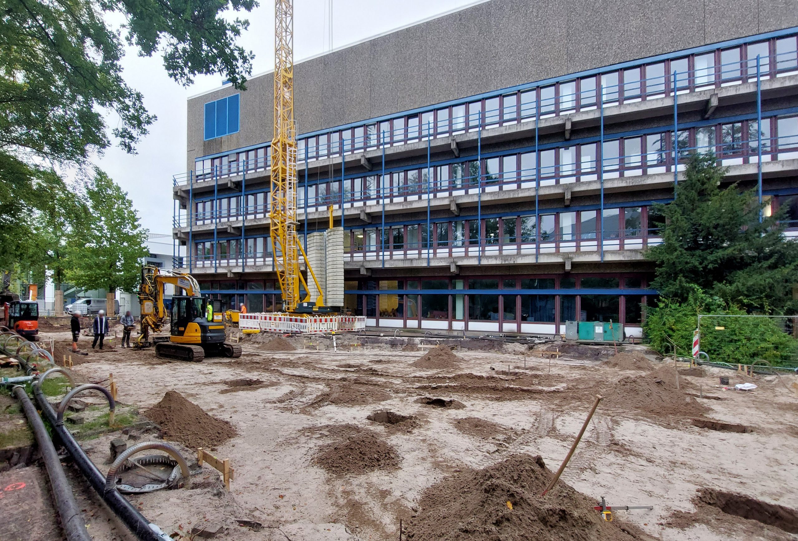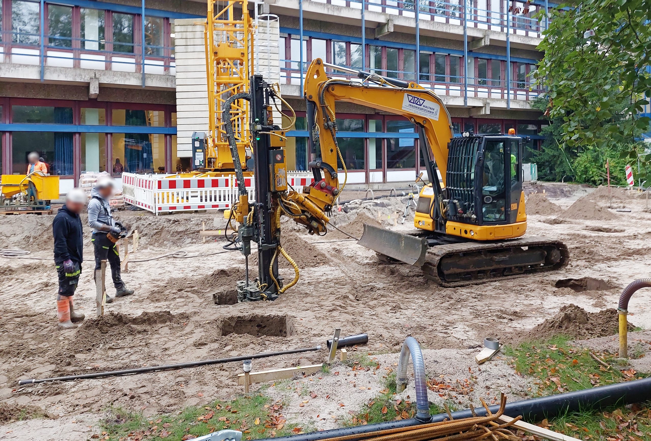 Aufgrund der Bodenverhältnisse auf dem Uni-Gelände ist eine Tiefgründung erforderlich. Dafür hat unser Nachunternehmer, die Waltner Ingenieurtechnik Kiel GmbH, in der letzten Woche die ausgeschriebenen Teilverdrängungsschraubbohrpfähle für insgesamt 27 Lastpunkte eingebracht.