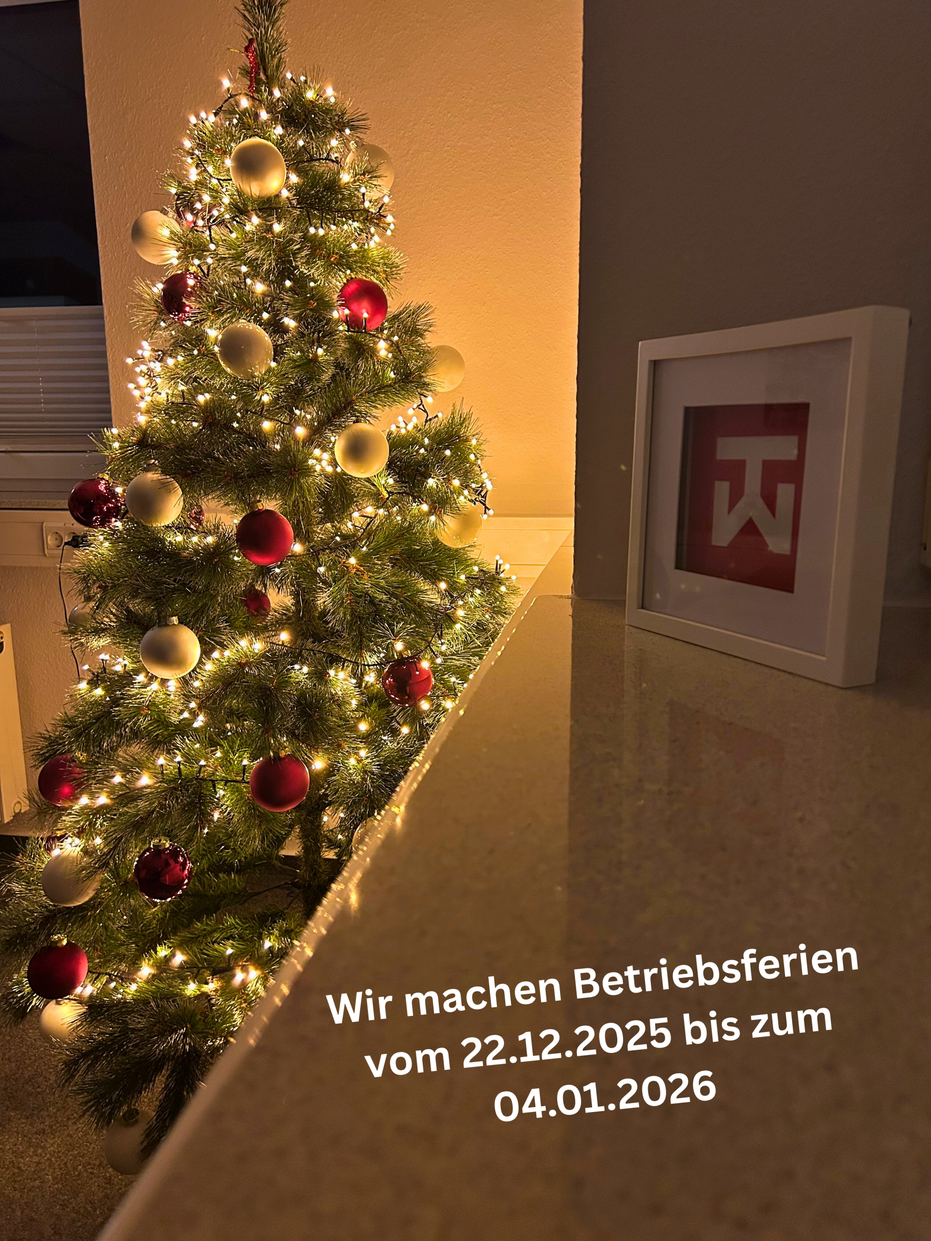 Bit­te beach­ten Sie, dass wir vom 22.12.2025 bis zum 04.01.2026 Betriebs­fe­ri­en haben.