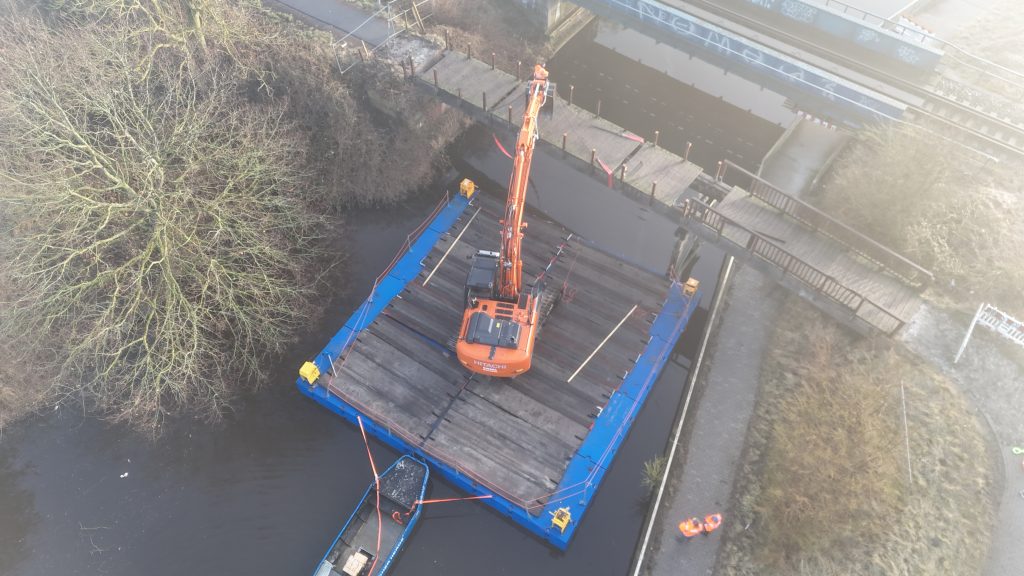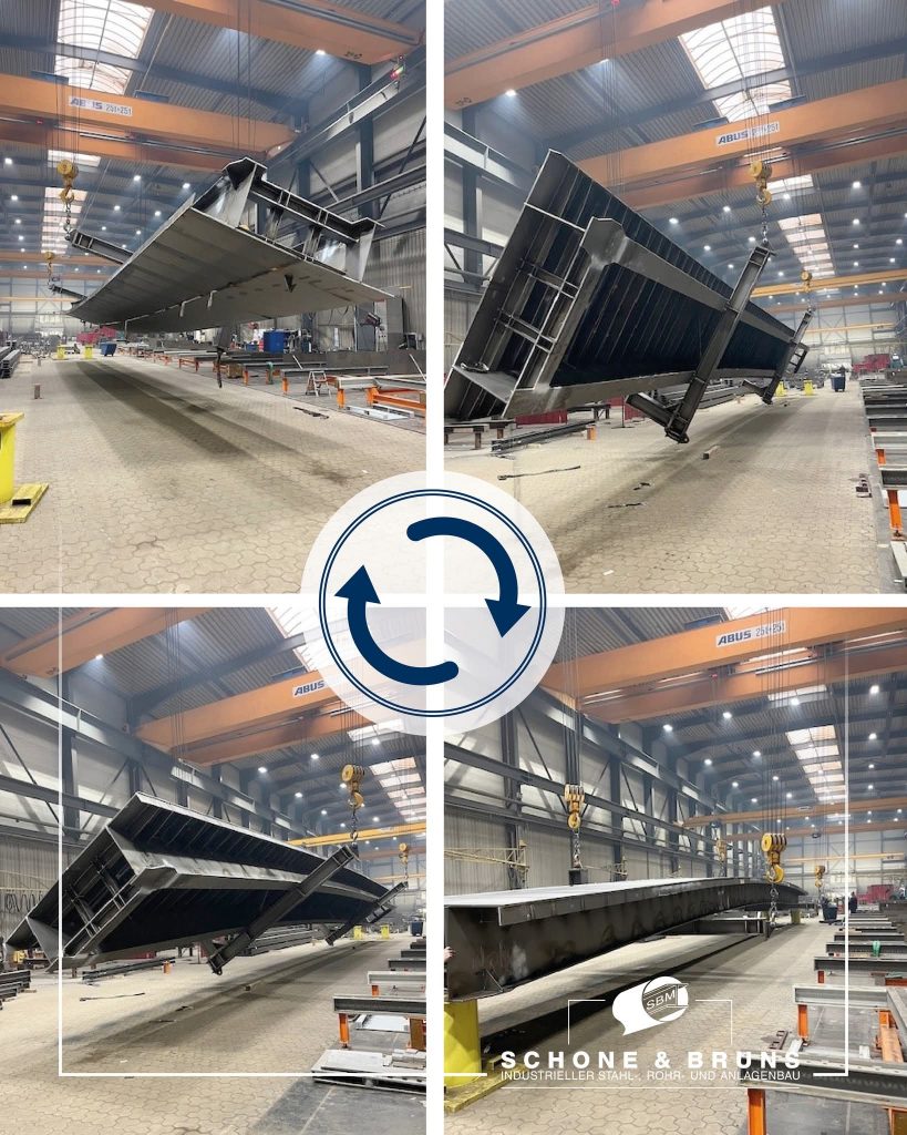 Auf­grund der beeng­ten Platz­ver­hält­nis­se vor Ort wer­den die Arbei­ten über­wie­gend vom Was­ser aus durch­ge­führt. Für den Ein­hub des Über­baus ist der Ein­satz eines Self Pro­pel­led Modu­lar Trans­por­ters (SPMT) vorgesehen.